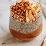 - Assemble the Apple Crumble Chia Pudding: Divide the chilled chia pudding evenly into 3 jars or serving containers. Top each pudding with an equal portion of the stewed apples, then sprinkle with about 2 tablespoons of the crumble topping. Optionally, serve with extra apple butter and a drizzle of maple syrup for added sweetness and flavor.