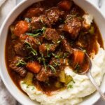 - Finish and serve: Skim off any excess fat from the surface if desired. Remove bay leaves and thyme sprigs. Adjust seasoning with additional salt and pepper to taste. Serve hot with creamy mashed potatoes for a traditional Irish meal experience.