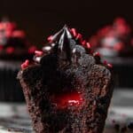 Bleeding Black Halloween Cupcakes are spooky and delicious chocolate cupcakes infused with black cocoa powder, filled with a rose-flavored white chocolate ganache, and topped with rich black chocolate buttercream. Perfect for Halloween celebrations, these cupcakes combine dramatic appearance with decadent flavors, featuring a unique rose water scented ganache that ‘bleeds’ when bitten into, creating a fun and eerie effect.