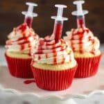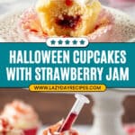 • Bloody Cupcakes are perfect for Halloween parties, combining classic vanilla flavor with a creative and delicious strawberry surprise.