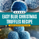 Celebrate the holidays with these festive Blue Christmas Truffles, featuring smooth white chocolate infused with vibrant blue curaçao and coated in sparkling sanding sugar. A perfect bite-sized treat that combines creamy texture with a hint of citrusy liqueur for an elegant holiday dessert.