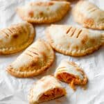 I love freezing these hand pies for quick meals later. After assembling, place them on a baking sheet in the freezer until firm, then transfer to a freezer-safe bag. They keep well for up to 2 months. When you want them, just bake from frozen — add a few minutes to the baking time and you’re good to go.