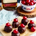 Delicious and festive Cherry Bourbon Balls combining finely chopped pecans, maraschino cherries, and a splash of bourbon, all coated in smooth semi-sweet chocolate for an indulgent treat perfect for holiday gatherings and celebrations.