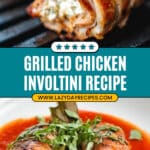 - Grill the Chicken: Place the involtini on the grill over medium heat. Keep the lid closed as much as possible and cook, turning a quarter turn every 3 minutes, until browned on all sides and cooked through, about 12 minutes total. Remove the chicken from the grill and let it rest for 5 minutes to retain juices.