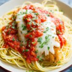 - Assemble and bake: Preheat oven to 425˚F. Pour half the marinara sauce into a 9×13-inch casserole dish. Arrange the fried chicken cutlets in a single layer over the sauce. Spoon remaining marinara sauce evenly down the center of each cutlet. Sprinkle shredded mozzarella over the top. Bake uncovered for 15 minutes or until the chicken reaches an internal temperature of 165˚F, the cheese has melted, and the sauce is bubbling. Garnish with freshly chopped basil or parsley if desired.
