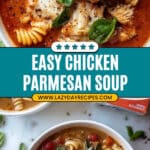 - This soup is packed with the rich, savory flavors of classic chicken parmesan transformed into a hearty soup format.