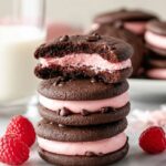 Delicious homemade Chocolate Raspberry Sandwich Cookies featuring rich cocoa cookies layered with a tangy and sweet raspberry cream cheese frosting. Perfectly balanced for those who love the combination of chocolate and fresh raspberry flavors in a delightful sandwich cookie form.