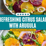 This refreshing Citrus Salad combines an assortment of vibrant citrus fruits with peppery arugula, tangy red onion, and crunchy walnuts. Tossed in a zesty lemon-Dijon dressing with a touch of honey, this salad offers a perfect balance of sweet, tart, and savory flavors, making it an ideal light meal or side dish for any occasion.