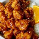 This Orange Chicken recipe delivers succulent, bite-sized chicken thigh pieces coated in a crispy batter and smothered in a sticky, sweet, and tangy orange sauce. Inspired by Panda Express, it features a perfect balance of citrus flavor, garlic, ginger, and soy sauce, making it a delicious homemade version of the popular takeout dish. Served over steamed rice and topped with sesame seeds, it’s a satisfying meal perfect for any weeknight dinner.