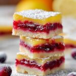 Tangy and sweet Cranberry Lemon Bars featuring a buttery shortbread crust, a luscious cranberry layer, and a zesty lemon topping. These bars are perfect for a refreshing dessert with a beautiful balance of tart and sweet flavors, ideal for any season.