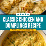 This warm and comforting Chicken and Dumplings recipe features tender chicken simmered with fresh vegetables and herbs in a flavorful broth, topped with soft, fluffy homemade dumplings. Perfect for a cozy family meal, it combines rich flavors and satisfying textures in a classic Southern dish.
