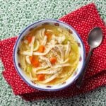 This homemade chicken and noodles recipe is a comforting, hearty soup made from scratch using a whole fryer chicken, fresh vegetables, and egg noodles. The broth is simmered to develop rich flavors, combined with tender shredded chicken and thickened with a flour mixture, perfect for a nourishing meal any time of year.