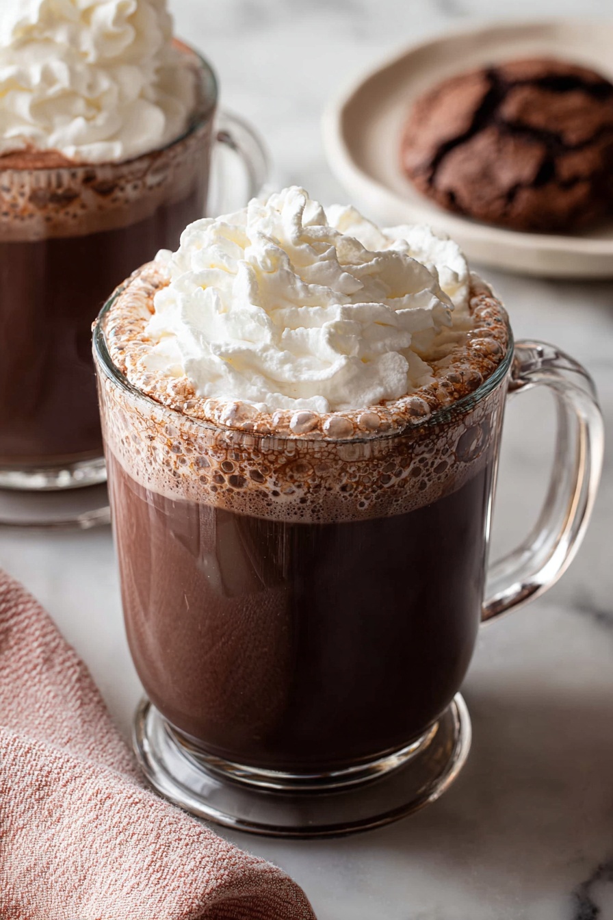 For special occasions, I like to serve this hot chocolate in clear mugs or stemmed glasses to show off the rich color and creamy texture. Adding a cinnamon stick or candy cane as a stirrer makes for a festive touch. I once made a hot chocolate bar for a winter party with various toppings and mix-ins, and it was an absolute hit!
