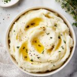 - Milk: Warmed before mixing in, so it blends nicely without cooling your potatoes.