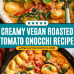 This Creamy Roasted Tomato Gnocchi is a vibrant, vegan, and easy-to-make dish featuring roasted grape and cherry tomatoes with fragrant herbs and spices, combined with tender potato gnocchi. The sauce is enriched with coconut cream and fresh basil, offering a luscious, dairy-free alternative perfect for a comforting meal.