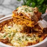 I love topping my lasagna with a sprinkle of freshly chopped basil or parsley for color and freshness. Sometimes I add a drizzle of extra virgin olive oil or a few chili flakes if we’re feeling adventurous. It adds that pop of flavor and makes the dish look irresistible.