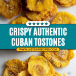 Authentic Cuban Tostones are crispy twice-fried green plantain slices that make a perfect appetizer or side dish. This recipe includes an optional garlicky mojo dipping sauce for a delicious Cuban twist. Made by frying, smashing, and frying the plantains again, tostones deliver crunchy, golden bites bursting with flavor.