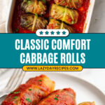 This hearty and comforting Cabbage Rolls recipe features tender cabbage leaves stuffed with a flavorful mixture of ground beef, pork, and parboiled rice, all baked in a rich tomato and chicken broth sauce. Perfect for a satisfying family meal, these cabbage rolls are cooked low and slow to ensure the meat is juicy and the cabbage is tender, delivering classic homestyle goodness.