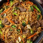 This Beef Lo Mein recipe is a flavorful and satisfying stir-fried noodle dish featuring tender strips of beef, fresh vegetables, and a savory soy-based sauce. Perfect for a quick weeknight dinner, it combines perfectly cooked lo mein noodles with a deliciously balanced mix of sweet, salty, and aromatic flavors, all tossed together in a hot skillet for a restaurant-quality meal at home.