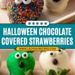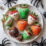 These Easy Halloween Chocolate Covered Strawberries are a fun and festive treat perfect for spooky celebrations. Featuring strawberries dipped in melted chocolate and decorated with candy eyeballs, sprinkles, and chocolate chips, this no-bake recipe is simple to prepare and sure to delight guests of all ages with its creepy cute look.