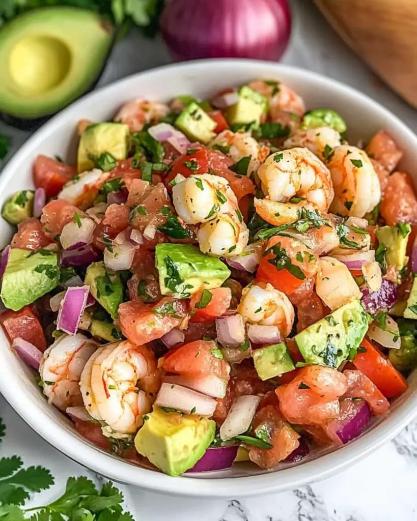 This easy shrimp ceviche recipe is a refreshing, zesty, and protein-rich dish perfect for summertime gatherings or as a light appetizer. Featuring tender shrimp marinated in a citrusy lime-lemon mix with fresh tomatoes, creamy avocado, crisp red onion, and vibrant cilantro, this ceviche is both quick and delicious. Serve chilled for the ultimate flavor experience.