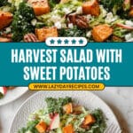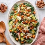 This Fall Harvest Salad recipe celebrates the flavors of autumn with roasted sweet potatoes, fresh kale, thinly sliced Brussels sprouts, and crisp apples, all tossed in a creamy tahini maple dressing. Topped with candied pecans and feta cheese, this vibrant salad is perfect for a nourishing lunch or as a hearty side during the fall season.