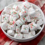 This festive Christmas Puppy Chow Recipe is a delightful and easy-to-make sweet treat perfect for holiday gatherings. Combining crunchy Chex cereal coated in a luscious mixture of chocolate, peanut butter, and butter, then dusted with powdered sugar and colorful sanding sugar, it creates a fun and tasty snack that guests of all ages will love.