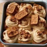 Experience the indulgence of Fluffy Biscoff Cinnamon Rolls topped with a luscious Cookie Butter Cream Cheese Frosting. These soft, pillowy rolls are packed with the iconic warm spice flavor of Biscoff spread, combined with cinnamon, and finished with a rich, tangy frosting that elevates the classic cinnamon roll to a gourmet treat perfect for breakfast or dessert.
