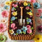 - Add the Finishing Touch: Optionally, place a small clean wooden scoop or decorative garden tool on top of the cake to enhance the garden theme and add a charming, playful element.