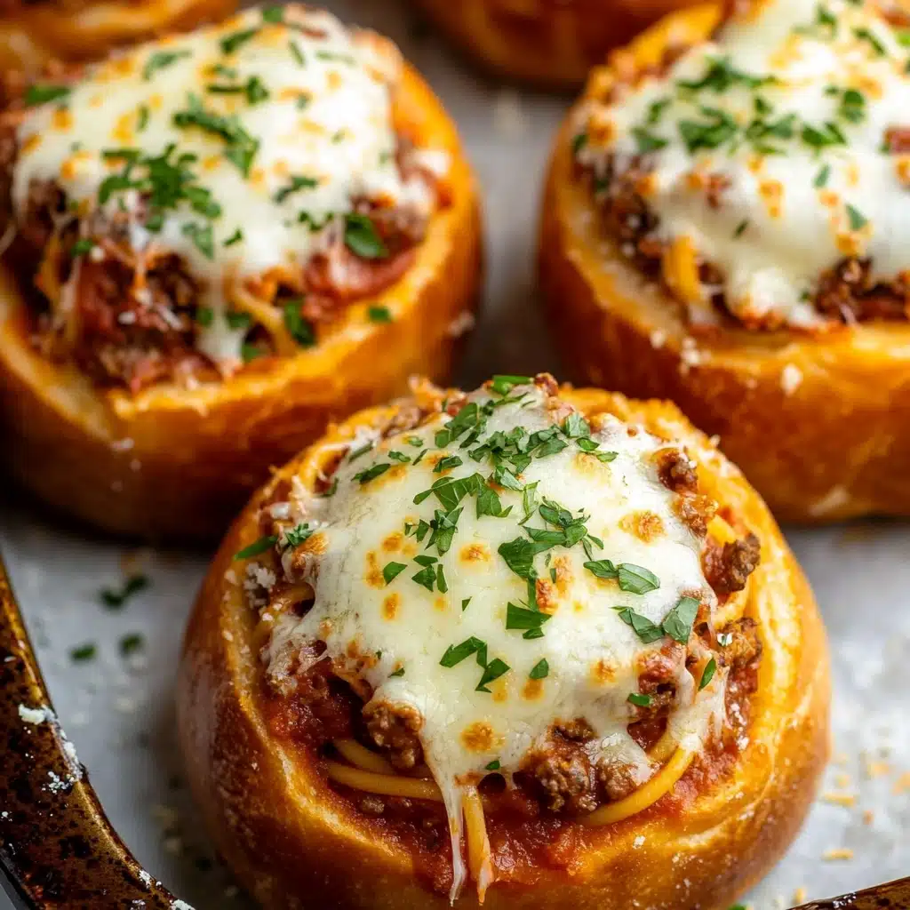 Once the spaghetti is ready, use tongs to transfer it straight into the sauce. Toss until every strand is coated. Generously fill each bread bowl with pasta, making sure there’s plenty of sauce to keep everything moist and flavorful. Top with a mountain of shredded mozzarella, then transfer to a hot oven and bake until the cheese is bubbling and the bread is golden—about 8–10 minutes. If you love a golden cheese crust, run them under the broiler for just a minute more!