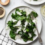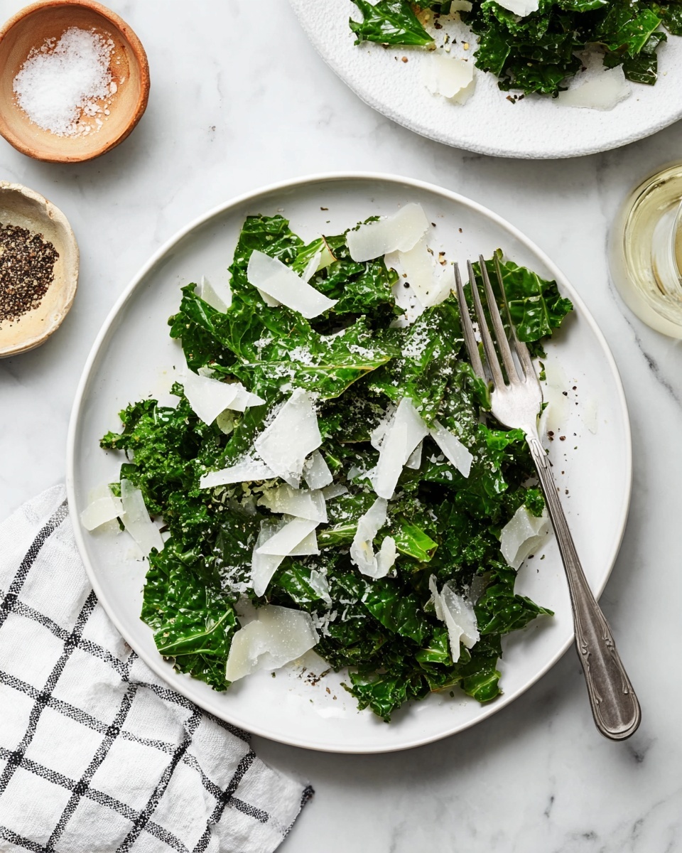 - Garnish and serve: Sprinkle the shaved Parmesan cheese evenly over the massaged kale. Serve immediately as a vibrant and flavorful salad.