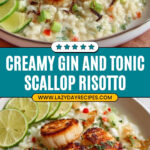 A sophisticated and flavorful Gin and Tonic Scallop Risotto featuring tender scallops seared to perfection atop creamy risotto infused with lime, gin, tonic, fresh mint, and cucumber, finished with Greek yogurt and Parmesan for a luxurious twist on a classic Italian dish.