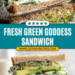 This Green Goddess Sandwich is a refreshing and flavorful vegetarian option featuring a creamy yogurt-mayonnaise herb sauce, fresh mozzarella, crisp cucumber, ripe avocado, peppery arugula, and crunchy alfalfa sprouts on whole-wheat bread. Perfect for a quick, healthy lunch, it combines vibrant herbs and fresh produce for a satisfying and nutritious meal.
