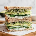 This Green Goddess Sandwich is a refreshing and flavorful vegetarian option featuring a creamy yogurt-mayonnaise herb sauce, fresh mozzarella, crisp cucumber, ripe avocado, peppery arugula, and crunchy alfalfa sprouts on whole-wheat bread. Perfect for a quick, healthy lunch, it combines vibrant herbs and fresh produce for a satisfying and nutritious meal.