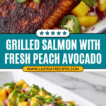 Delicious and vibrant grilled salmon topped with a fresh and zesty peach-avocado salsa, perfect for a quick and healthy dinner that combines smoky, sweet, and tangy flavors.