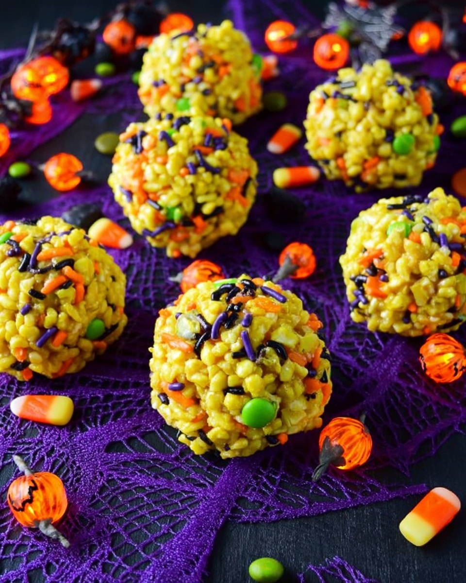 These Halloween Popcorn Balls are a fun and festive treat combining lightly sweetened popcorn with colorful neon green marshmallow coating, M&M’s in Halloween colors, and vibrant sprinkles. Perfect for parties, trick-or-treats, or seasonal snacking, they are easy to make and shaped by hand into delightful snack-sized balls.