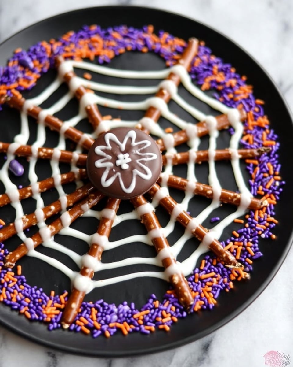- Candy Spiderwebs are ideal Halloween Pretzel Treats that combine festive decoration with a salty and sweet taste.