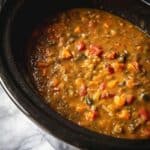 A comforting and nutritious slow cooker lentil and vegetable soup packed with red lentils, hearty potatoes, fresh kale, and a medley of vegetables seasoned with warming spices. Perfect for an easy, healthy, set-it-and-forget-it meal that can be enjoyed throughout the week.