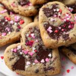 This recipe for Heart Shaped Chocolate Chip Cookies delivers soft, slightly underbaked centers with lightly golden edges, perfect for gifting or special occasions. After baking, the cookies are cut into charming heart shapes while still warm, creating a delightful visual and tasty treat featuring a classic blend of semisweet chocolate chips in a buttery dough.