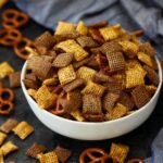 Bold and Buttery Homemade Chex Mix is a crunchy, flavorful snack blend of Corn, Wheat, and Rice Chex cereals, mini pretzels, rye bagel chips, and optional mixed nuts all coated in a rich butter and Worcestershire sauce seasoning. This savory mix is baked to golden perfection for an irresistibly crispy treat perfect for parties, game days, or casual snacking.