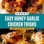 - Sticky, tender boneless chicken thighs are perfect for absorbing the flavorful honey garlic sauce.