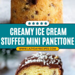 Since the ice cream is quite cold and thick, it doesn’t soak into the bread quickly. But if you plan to store stuffed panettone overnight, keep them tightly wrapped and in the freezer to minimize moisture transfer and maintain texture.
