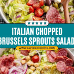 This Italian Chopped Brussels Sprouts Salad is a vibrant, flavorful dish combining thinly sliced Brussels sprouts with a zesty homemade Italian dressing, chickpeas, Genoa salami, cherry tomatoes, olives, pepperoncinis, red onion, and a blend of provolone and Parmesan cheeses. Perfectly balanced with tangy, savory, and slightly sweet notes, this salad offers a refreshing twist on traditional greens and works well as a side or light main course.