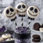 - These Jack Skellington Oreo pops are perfect for Halloween, Christmas, and class parties that need a fun and festive treat.