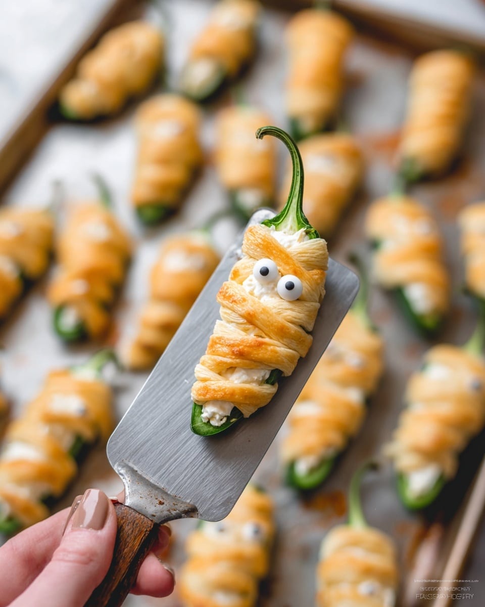 - Jalapeno popper mummies are cute, spooky, and loaded with tasty ingredients, making them perfect for Halloween parties.