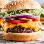 This classic hamburger recipe features juicy, well-seasoned ground chuck patties grilled to perfection. Enhanced with a flavorful homemade spice blend and topped with melted American cheese and fresh toppings, these burgers are perfect for backyard barbecues or casual dinners. Serve on toasted buns with your favorite condiments for a satisfying meal.