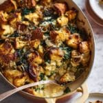 I’ve frozen the strata after baking with good results. Cut it into portions and wrap tightly in plastic wrap and foil before freezing. When you’re ready to enjoy, thaw overnight in the fridge and reheat gently in the oven to preserve texture and flavor.