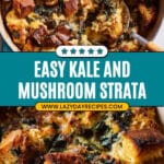 A custardy, savory Kale and Mushroom Strata combining sautéed wild mushrooms, tender dinosaur kale, and toasted bread soaked in a rich egg and cheese custard. This baked breakfast casserole is perfect for holiday mornings or any special brunch occasion, delivering a hearty mix of flavors and textures.