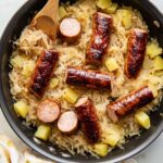 This hearty Kielbasa and Sauerkraut recipe combines smoky kielbasa sausage with tangy sauerkraut and tender potatoes, all cooked together in a skillet for a comforting Eastern European-inspired meal. The sauerkraut is rinsed to mellow its sourness, and the addition of caraway seeds and chicken broth enhances the flavors, making this a perfect dish for a cozy dinner.