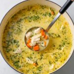 A bright and comforting Lemon Chicken Orzo Soup featuring tender chicken, fragrant herbs, and tender orzo pasta in a creamy, lemon-infused broth. This hearty soup is perfect for a nourishing meal with a fresh citrus twist, combining simmered mirepoix, chicken, and aromatic seasonings to create a deliciously zesty and satisfying dish.